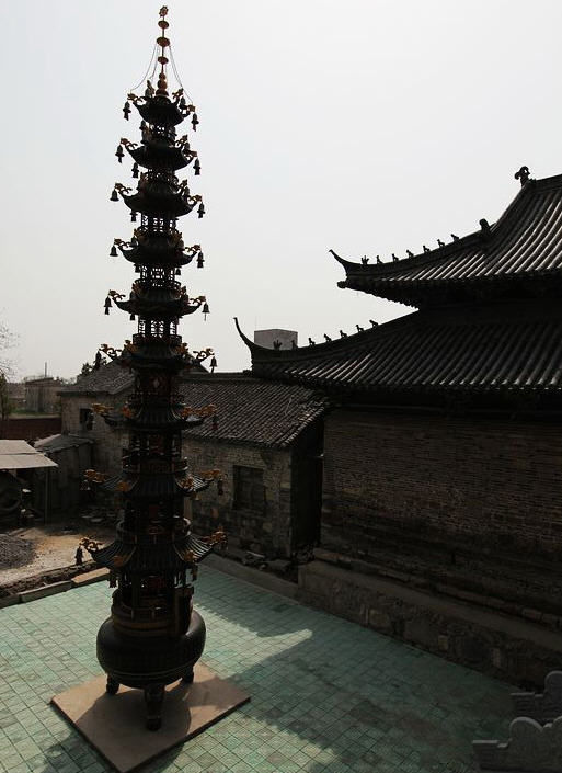 走到西大寺巷尽头,越过高大红色的照壁,迈进山门,即到第一进大院,院内苍松翠柏,郁郁葱葱。院正中是宋塔地宫,原为九级的北宋舍利砖塔,后倒塌六级,残存的三级因危及游人安全, 于1977年拆除。清基时发现了塔下的地宫,地宫有彩绘壁画及金、银棺等珍贵文物。再穿过二佛殿,便来到第二进深院,两棵千年银杏遮天蔽日,把金碧辉煌的大雄宝殿和东西廊房掩映在绿荫之中。