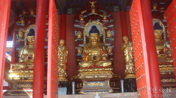 宿迁市菩提寺(“菩提”意为觉悟、智慧,用以指人忽如睡醒,豁然开悟,达到超凡脱俗的境界)位于市嶂山森林公园境内,总面积50亩。寺庙四周柏青松翠,鸟语花香,依山傍水,景色迷人,是发展旅游业和弘扬佛教文化的人间佳境。菩提寺前身为一个私人寺庙,几经风雨,多年失修,抗战时毁于战火,现菩提寺为恢复重建,地理位置在原址西侧。