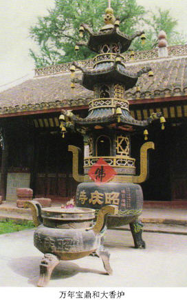 昭庆寺位于安徽省六安市东南南25公里的孙岗镇郊,坐落在长江、淮河分水岭之顶。依山傍水,周围茂林修竹,古木参天,气候宜人,景色壮美。该寺始建于唐朝贞观年间,系太宗皇帝亲诏敕建的我国四大昭庆古寺之一。六安昭庆寺由唐朝开国元勋尉迟恭督造,其匾额为初唐著名书法家欧阳询所书(现由中国佛教协会会长赵朴初重书)。该寺集弥勒殿、大雄宝殿、毗庐殿、接引殿等四座大殿于一体,殿宇卍字亮脊、斗角飞檐,庄严肃穆,壮观雄伟,其规格之高,规模之大,远非一般民间自发所修建之寺院可比,即使在全国范围内,当今像昭庆寺这样历尽沧桑而尚保存得如此完好的古代皇封正统古刹亦属凤毛麟角。故而在80年代初我国寺院定级时,该寺被定为省级重点文物保护单位。 昭庆寺法脉属临济宗,自一世祖福佑大和尚至现任住持僧西池法师,承传已达十九世,历代均有高僧大德住世。其中尤以中兴始祖福佑大和尚、中兴九世祖事海大和尚和第十四世祖延永大师等在当时的佛教界中最具影响,倍受推崇。他们的弘法利生事迹为后世留下了许多动人的传说。