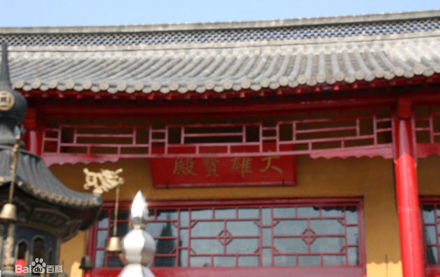中大殿为"大雄宝殿",这是寺内主要建筑物,青砖青瓦,飞檐走壁,廊檐下有五根朱红柱,显得古色古香。大雄宝殿内供有三尊2米多高的大佛像,分别是释迦牟尼、药师和阿弥陀佛。三尊大佛金光灿灿,肃穆慈祥。在后壁悬挂的三圣像两侧写有"真诚清净平等正觉慈悲,看破放下自在随缘念?quot;醒目条幅。三尊大佛背面是立于鳌背的观音塑像,金童、龙女站立两旁,显示出普渡众生、大慈大悲的形象。大雄宝殿东山墙壁上镶着刻有梵音寺缘起大理石碑文;西山墙上刻着682名台湾民众捐资功德芳名录。