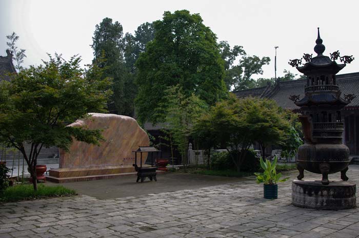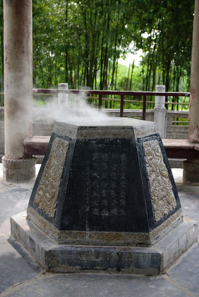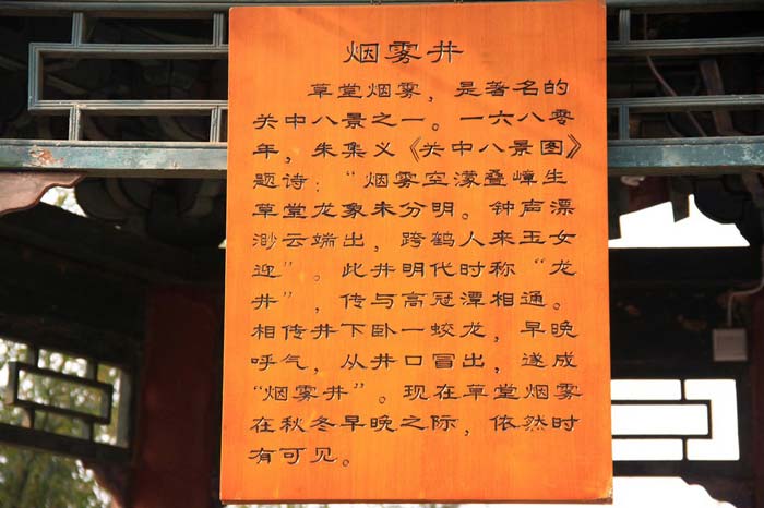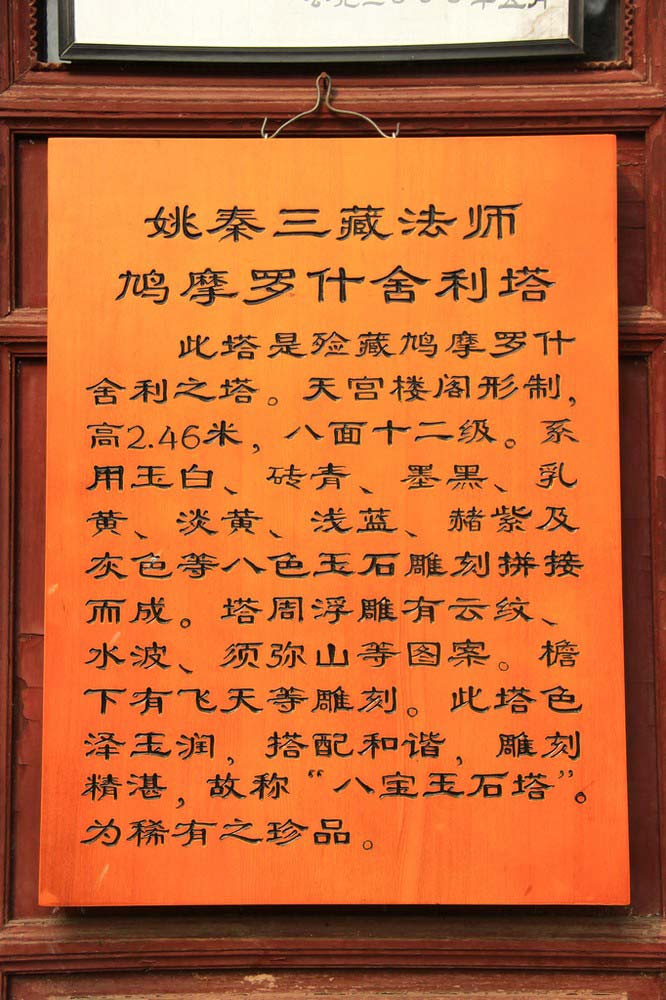 草堂寺坐北朝南,高大的山门上方挂着赵朴初先生所书“草堂寺”金字横匾。沿青砖林荫道北行,道旁立一座古色古香钟亭,挂一口明万历十九年(1591年)铸巨钟。钟重2吨,高2.6米,口径2.2米,钟脚饰以浮雕龙凤狮子图文。与钟亭相对是碑亭,内有《唐故圭峰定慧禅师碑》。定慧禅师即唐高僧宗密,华严宗祖师之一。大殿西侧门外,有一塔亭,亭内矗立着草堂寺最珍贵的文物—姚秦三藏法师鸠摩罗什舍利塔。塔身八面十二层,用纯玉石襄拼而成。舍利塔北边竹林深处,掩映着远近闻名的“烟雾井”。