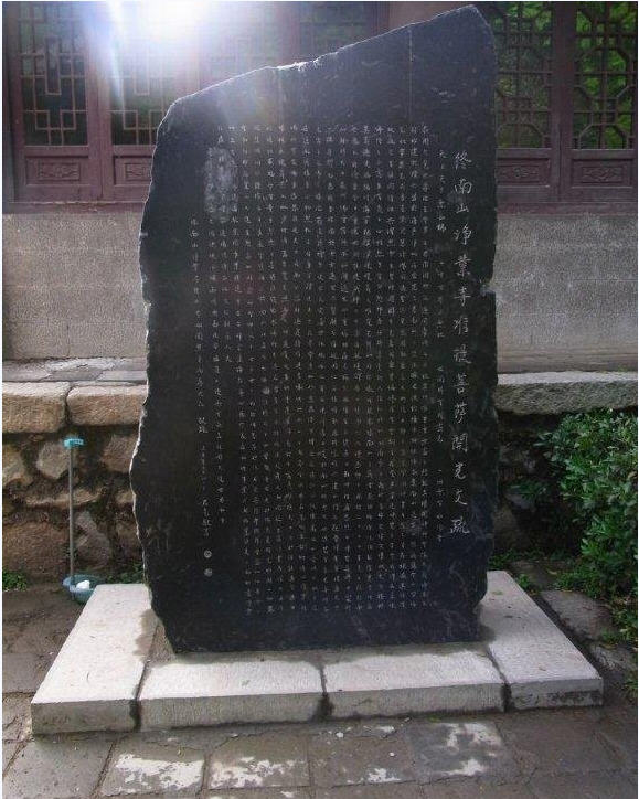 净业寺始建于隋末,唐初为高僧道宣修行弘律的道场,因而成为佛教律宗的发祥地。道宣(596-667年),俗姓钱,丹徒(今江苏丹徒)人。自幼聪慧,9岁能作赋,15岁出家,20岁受具足戒,先后依止智顗、智首律师钻研律学,曾在大禅定寺听智首律师讲《四分律》四十遍,历时十年。而后,道宣律师四方参学,“居无常师,追千里如咫尺;唯法是务,跨关河入一苇;周游晋魏,批阅累于初闻;顾步江淮,缘枸彰于遒听。随以立年,产寻铅墨,律仪博要,行事谋猷,图传显于时心,钞疏开于有识;或注或解,引用寄于前经,时抑时扬,专门在于成务。”武德七年(624年),道宣结庐终南,始居白泉寺、丰德寺,后得护法菩萨“彼清官村,故净业寺,地当宝势,道可习成。”之示,遂移居净业寺。此后四十余年,道宣律师除两次出山,被礼请参加玄奘法师在长安弘福寺、西明寺组织的译场外,其余时间均在净业寺潜心禅定,研究律学。他曾因严持戒律、精修般舟三昧而感人天送供,天神护法。道宣律师以大乘教释《四分律》,广弘律学一脉,他的著述中有关《四分律》疏、钞极多,其中《四分律删繁补阙行事钞》、《四分律删繁随机羯磨疏》、《四分律含注式戒本疏》被称为“南山三大部”,再加上《四分律拾毗尼义钞》、《四分比丘尼钞》等著作,在中国佛教史上占有极其重要的地位。唐干封二年(667年),他在终南山清宫精舍创立戒坛,依其所制得传戒、受戒仪规为诸州沙门二十余人传授具足戒。所着《关中创立戒坛图经》成为后世戒坛之模范。道宣律师生平“三衣皆伫,一食为菽,行则仗策,座不倚床”,其道行盛名远播西域,唐开元三大士之一金刚智法师亦幕名来长安亲近道宣律师。玄奘、窥基、圆测法师、牛头祖师及孙思邈等与道宣律师交往的故事颇多。唐高宗干封二年(667年)十月三日圆寂,葬于坛谷石室。唐高宗诏令天下寺院奉供道宣律师画像,并令名匠韩伯通为其塑像。唐穆宗曾下赞曰:“代有完人,为如来使。龙鬼归降,天神奉侍。声飞五天,辞惊万里。金乌西沉,佛日东举。稽首皈依,肇律宗主。”后人因其长期居住终南山,尊称他所弘的《四分律》为“南山宗”,亦尊称他为“南山律祖”。