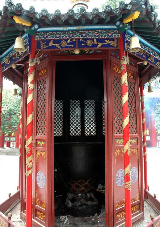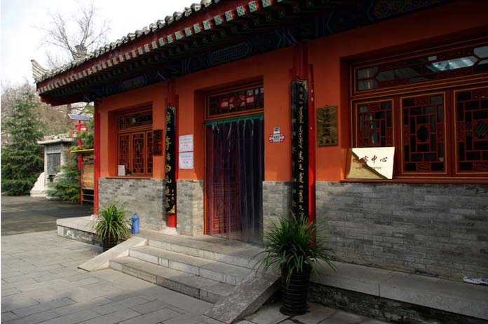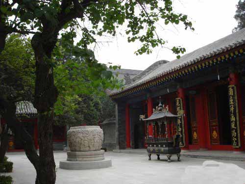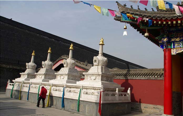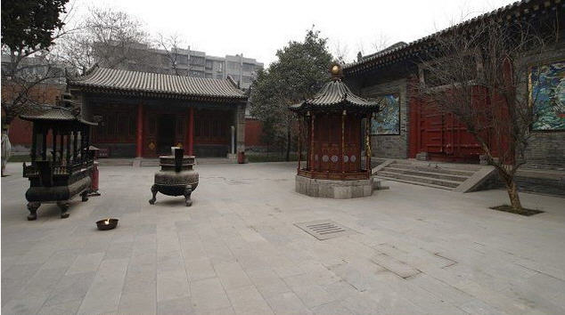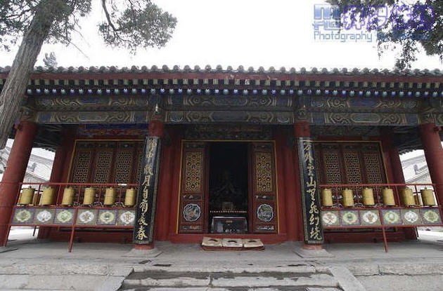 藏经殿在大殿后面。殿内供奉着高1.5米的西藏喇嘛教格鲁派(黄教)创始人宗咯巴大师彩色塑像,并藏有康熙三十九年刻本藏文《甘珠尔大藏经》108卷和康熙四十五年重修版汉文《大般若波罗密多心经》6770卷,极为珍贵。殿前有一大理石兰花纹水缸,高1米,直径1米,缸口镌刻隶书铭文,系清朝乾隆年间雕刻,俗称“乾隆兰花缸”。藏经殿的后面有一小四合院,院中讲经堂3间,为喇嘛们念经的地方。两侧各有2间僧房。在大殿和藏经殿的两侧各有配殿、厢房等互相对称。寺内共有建筑100多间,颇具规模。