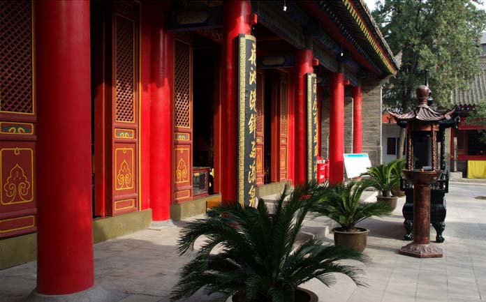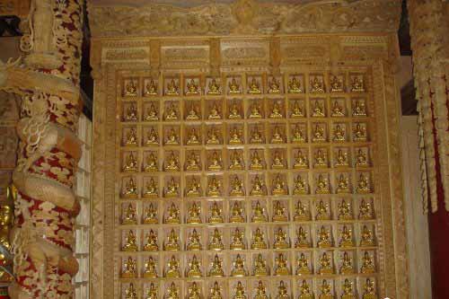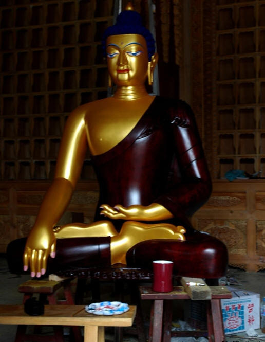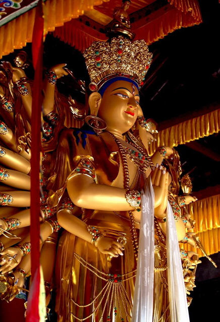 大雄宝殿正中供奉着3尊佛像,正中是宝相庄严、精美绝伦的鎏金铜绿救度母像,左侧是木髻天母像,右侧是木质巨光天母像,均为唐代文物。其他殿堂内还供奉有明代本质阿弥陀佛像,印度造释边牟尼像、西藏造鎏金铜佛像等。