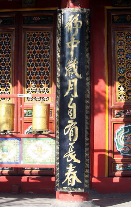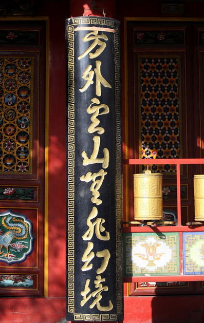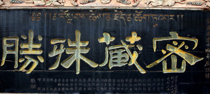 寺内还珍藏一部北京版的(藏文大藏经),康熙三十九年所赐。共107包,为甘珠尔类(佛部),收入律、经、密咒三部分。有目录(汉、藏、满、蒙四种文字并列)、密部、大般若、二万五千颂、万八千颂、诸般若、宝释部、华严部、诸品经、律部和八千颂等内容。该版藏经是清王室宫本,刻造、装帧颇为精良,版型较一般藏文经大,每筴扉画均为手工绘制,笔触细腻,大多出自藏、蒙族名僧中画家手笔,极为珍贵。