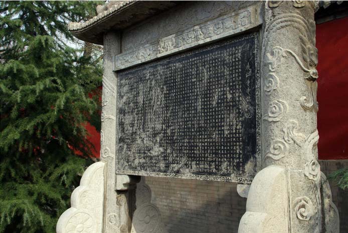 《御制广仁寺碑》系清康熙四十二年(癸未、1703年)康熙帝到边疆(西陲)关中一带巡视时,为了长治久安,尊重民俗民风,拨款建寺。康熙帝亲书碑文,记载了建寺经过等情。碑通高5.16米。其中碑座0.98米,碑头1.4米。碑座前后两面为两组二龙戏珠,左右两侧为两组升龙,碑头由四条盘龙组成。碑文如下: