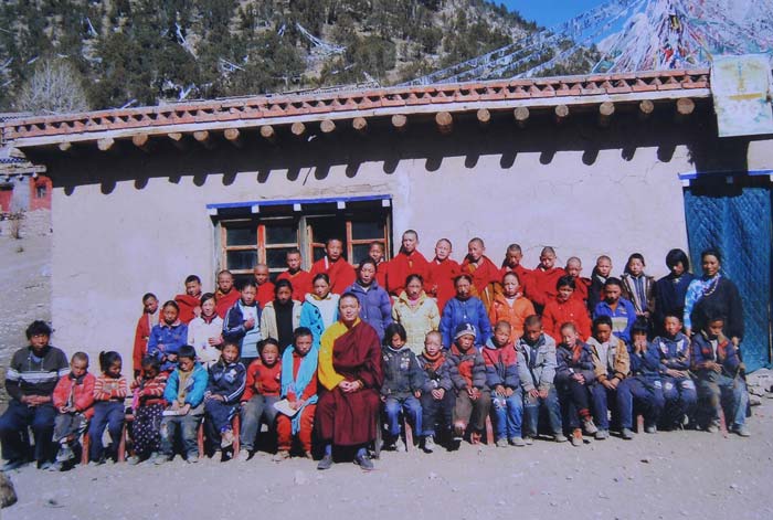 尼亚寺主持土登绕噶堪布与寺院的小师傅及当地信众的合影