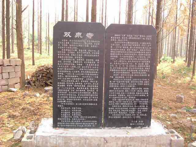 双泉寺,原名福源寺,位于无为县城西南40公里的蜀山镇,身处国家森林公园周家大山山脚之下,群山环抱,泉水溪流,苍松翠柏。有碑记:唐贞观二年(628年),太宗皇帝赐金建福源寺,顶梁有“李世民御建尉迟恭德监造”11个涂金大字。唐永徽四年(653年),伏虎禅师重建禅院,因寺外有双泉胜景而更名为“双泉寺”。因双泉寺历经数朝,惜寺与塔早已毁损。