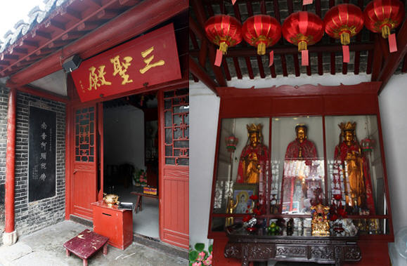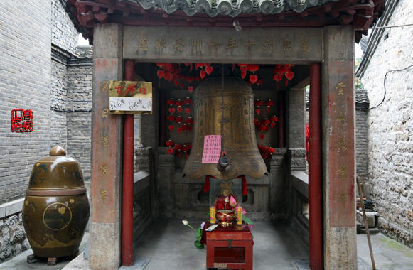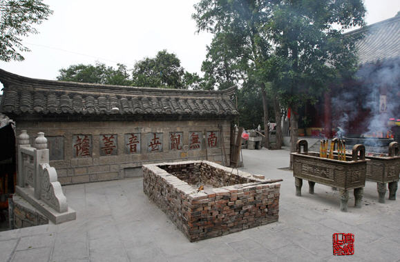 园通宝殿前面有两株古柏,树龄已七百年,姿态奇古,傲然挺拔,为徐州重点保护的古树名木。在旧时代,那些求子心切的善男信女,膜拜送子观音之后,往往用摸树来验证。闭上眼睛若能从一株摸到另一株,则所求必应。