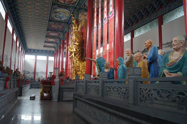 大蜀山“山形单椒,秀泽不连,岭以自高”,与东西三十里外的浮槎、鸡鸣两山相睥睨,独居其中,历来都是合肥的一个重要景点。宋代诗人郭祥正在《郡城眺望》中写下了:“蜀山回出千螺秀,淝水长萦一带回”诗句。明代诗人龚志益在《游大蜀山》中赞叹道:“十年前此问岩阿,醉卧南窗共放歌”。清朝末年“蜀山雪霁”被评为庐阳八景第一景,今人的“蜀山春晓”亦列为合肥十景前茅。如今的大蜀山不光春晓迷人,而且四季咸宜,唯独不见了当年的开福寺、吴王宫和传说中的渊济龙王庙。在这政通人和、国运昌盛、经济繁荣、市建兴旺的新时代,已是耄耋之年的安徽省佛协会长、明教寺方丈上妙下安大和尚立下宏图大愿,决心在自己有生之年亲率两序大众重建开福寺,要把开福寺建成江淮第一流的丛林寺院,人间净土,以庄严国土,利乐有情。