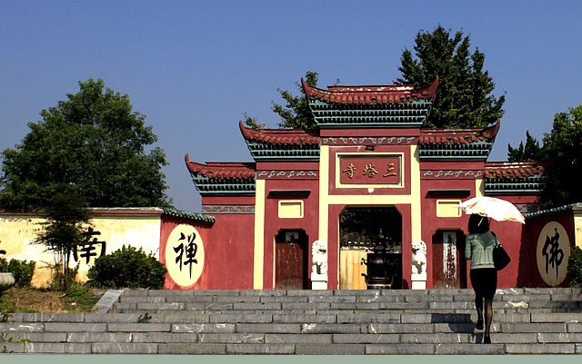 三塔寺,江淮名刹。在安徽全椒县城西北18公里六镇东北侧。创建于隋大业(605—618)年间。北宋徽宗大观元年(1107),在寺前建塔三座,因名“三塔寺”。相传扬州琼花,实产于全椒六镇,名“六丈琼花”(六丈,六镇原名六丈市)。并建有一座巨大的琼花池(宋参知政事、邑人张 AAA《琼花池》诗云:“此花已去不须嗟,亡国亡家总为他。父老不知前日事,逢人口口道琼花。”)。隋炀帝移琼花于扬州后土祠后,琼花池边便建此寺,以取天地灵气。明洪武年间,因谒泗、凤两陵,取三塔之砖,“ 毛汤桥,塔久圮,天启年间重修,杨宏宇有记”(民九《全椒县志》)。此寺历代屡有修葺。有殿宇五进,廊房迥曲。一进寺门,二进天王殿,三进大雄宝殿,四进地藏殿,五进三世殿。各殿均塑有佛像,是全椒规模最大,佛像最多的寺庙。供佛祖、观音。寺内大悲楼下,有千年黄杨一株和绝世牡丹百余株。每年花开之时,有文人雅士来做“牡丹诗会”。明进士吴国龙《三塔寺》诗云:“偶过萧关息,悠悠爽到秋。鸟为松子下,我以树香留。冗底观松简,嚣余觉寺幽。更欣新再足,恰称小溪流。”清有白衣道人方定国居此,杭州知府薛时雨有《白衣道人行》行世,三塔寺遂更知名。