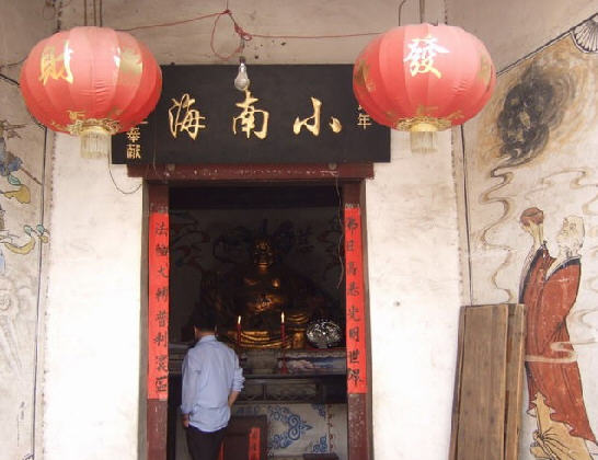小南海寺(庙),位于六安市中心城区九墩塘东侧,始建于清初,是城区影响较大的古寺庙。据《六安州志》记载,该寺原名“广济院”,原有房屋18间,其中前殿5间、后殿3间外加厢房、禅房等,曾数度毁于兵火又数次重建。十年动乱期间,庙内原收藏的古经书、玉石香炉、明宣德年间的三个铜香炉和大红玉带镯等名贵文物被洗掠一空。改革开放后,经多方努力,寺庙得以重修。