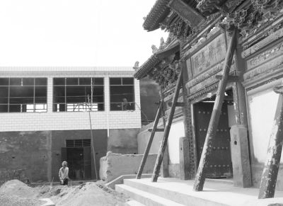 与“小洋楼”紧紧相连的就是大佛寺。一个是现代建筑,而另一个却是有着 500多年历史的古建筑,放在一起,极不协调。据了解,这个“小洋楼”是永安村村民火福明今年4月中旬开建的。采访时,正在大佛寺拍摄专题片的工作人员称:“大佛寺的全景现在没法拍,新楼影响了大佛寺的整体景观,破坏了古建筑观赏的完整性。”