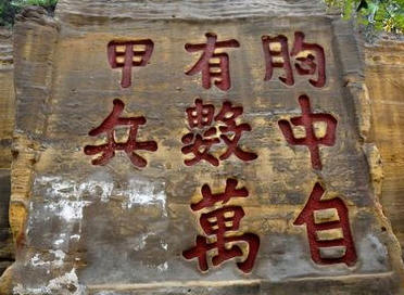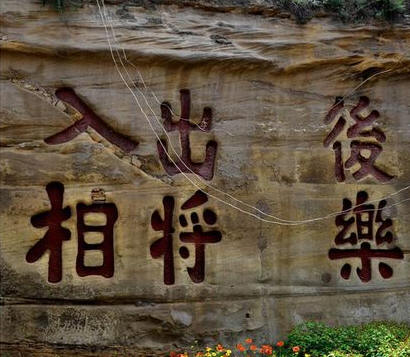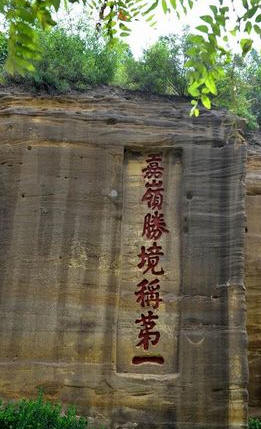 宝塔山摩崖石刻位于陕西省延安城内宝塔山(又名嘉岭山)下,现存9组宋代石刻。内容包括“嘉岭山”、“出将入相”、“先忧后乐”、“重岗叠翠”、“高山仰止”、“云生幽处”、“胸中自有数万甲兵”、“一韩一范,泰山北半”、“嘉岭胜境称第一”等。其中“嘉岭山”3个隶书大字,宽3.37、高3.68米,系北宋著名的政治家、军事家、文学家范仲淹于庆历四年(西元1044年)秋所题,字体遒劲有力,洒脱豪放,是这处摩崖石刻中的精品。
