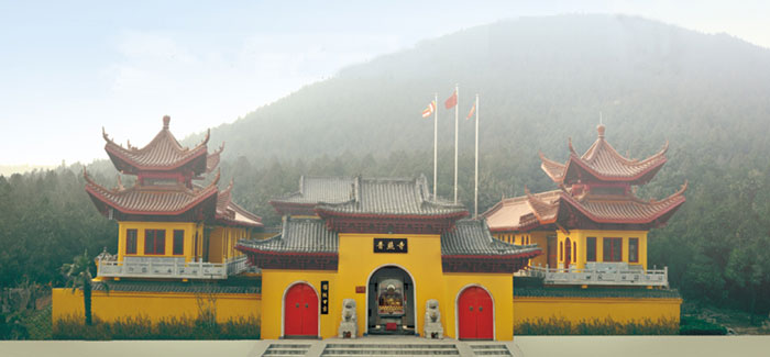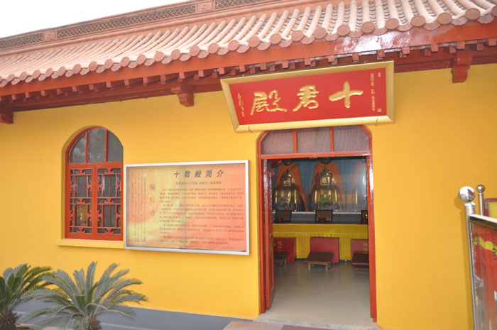 寺院座落在风景秀丽的泰山北麗,建筑有山门、天王殿、大雄宝殿、卧佛殿、斋堂等,其中以十王殿供奉<十殿王君>(文十君)圣像,为国内最有特色的佛教寺院之一。