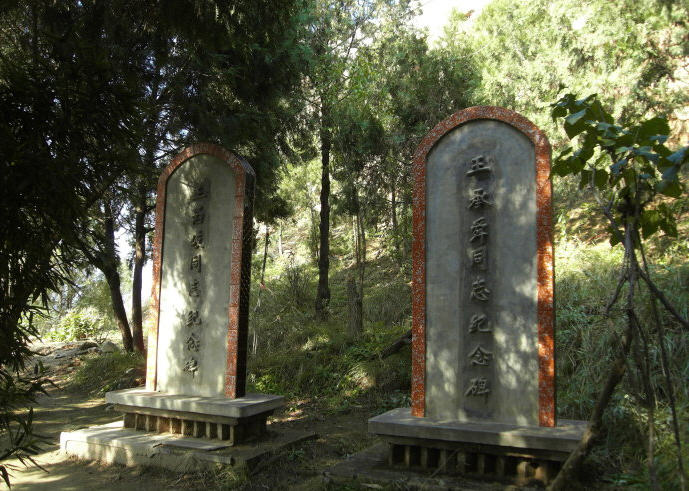 立于安林山庆寿寺门口的两座纪念碑,左面是王治岐,右面是王承舜,这两位都是王家庄人。