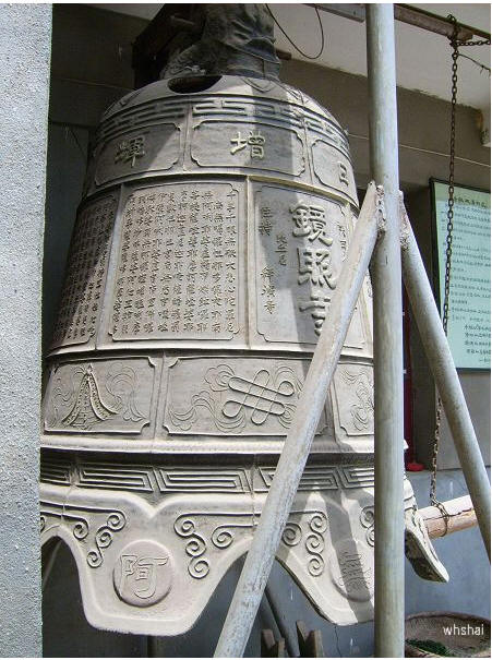 由于住持不在,我们没有进到大殿里面去,我们登上了钟鼓楼,由于地理的原因吧,所以两个建筑很是狭小,廊檐上的鸟雀成群,我们站在下面也没有惊扰到它们,叽叽喳喳的,在这一种庄严肃穆之中平添了一丝活力,一丝生机。我伸手轻轻的抚摸着大钟,上面的铭文还很清晰,是佛家的偈语,我粗略的瞧了瞧,没有细看,轻轻的触动了钟锤,“嗡”的一声,雄厚的声音生生的钻进耳朵,震撼着耳膜。我顿时肃然,因为看着远处的人家,耳边回响着这种雄浑的声音,我不禁想到了要是能够常栖于此,聆听晨钟暮鼓,那心里将会收获怎样的一份安然?但是我知道,这只能是一种奢望,我们的行程安排的很紧凑,我们必须在这几天的时间里将杨凌的几处古迹访个遍,于是我们只能匆匆的告别,告别镜照寺,告别了这个给我带来了瞬间心灵净化和安然的地方。信手乱诌了一首小诗,贴出来博大家一笑: