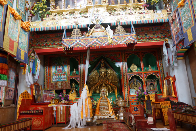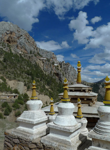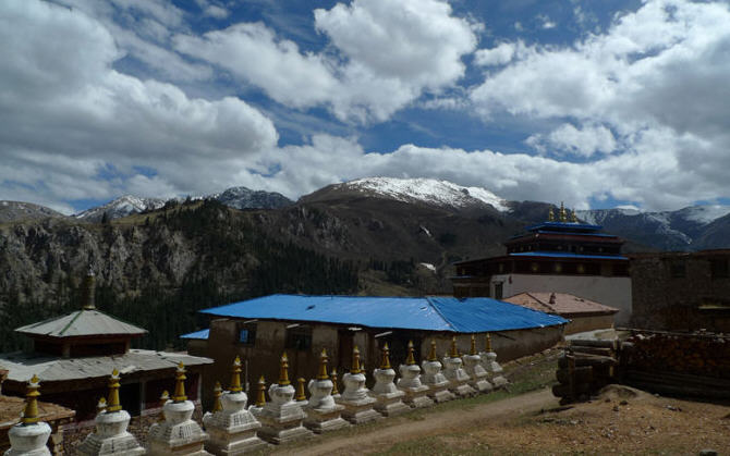 尕尔寺坐落于一座海拔3700多米的高山上,分为上寺和下寺。山的北面全是奇峰怪崖、寒风料峭,但南边却是略有坡度、温暖向阳。尕尔寺的数百间建筑,就不规则的分布在山南边的这个大山坡上,从下至上,直到山顶。