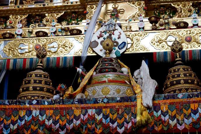 尕尔寺有将近1000年的历史,传说公元700多年前,莲花生大师曾在此镇修行。镇寺之宝是一对奇特的转经轮,传说为文成公主进藏嫁给松赞干布时带的嫁妆。在这漫长时光,安置于尕尔寺上寺的这对转经轮,昼夜不停地由喇嘛两人一班地值班转动。常转不息的经轮,伴随着高原深处的藏民们度过千秋风雨。
