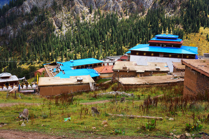 时间一长,这里的僧人们和山里的动物成了朋友,一些猕猴、岩羊等动物,也经常自由出入寺院,与僧人们亲密接触。这是人与自然和谐相处的典范,也是尕尔寺独有的自然景观。