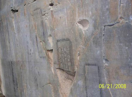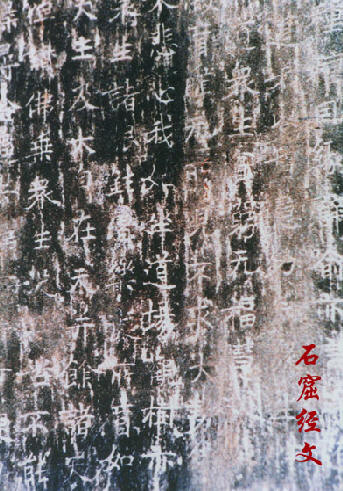 窟内东西两壁刻满经文,字径1.5厘米。存经可辨认的有:佛说金刚般若波罗密经、七阶佛名经、如来示教胜军王经、妙法莲华经、佛说大方广十轮经序品等。以残存字痕计算,两壁刻写之经文共约9万字,经文刻在易风化的细砂岩上,部分已脱落难辩。