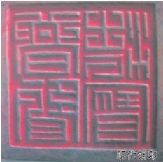 明室开基重缁流,世善觉义繁有俦。贻谋奕页绍箕裘,世道升降诚有由。电掣光阴一转瞬,煌煌只有尺素留。寄言善识众比丘,什袭藏之当图球。永乐铜印。系永乐十年(1412)五月,明成祖在给寺上颁《皇敕》时,赐赠的十件宝之一。印为铜质,边长10厘米的正方形,背的提扭。正面篆刻阳文“普贤法宝”四字,周留半厘米的边框。文字雕刻刚劲有力,笔划匀称,布局严谨。近六百年来一直是西蜂窝寺的寺印,用于发布法令公告、贵宾请柬、寺院文告等。