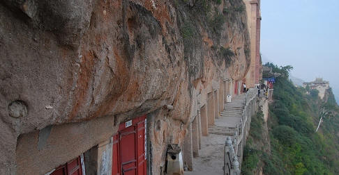 大佛洞窟两旁,依山附势修有走廊,廊上窟龛相连,现存二十二个窟龛。大都平面近方形。正壁开大圆拱龛和设高坛基,并有僧人修行的禅窟。
