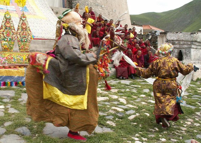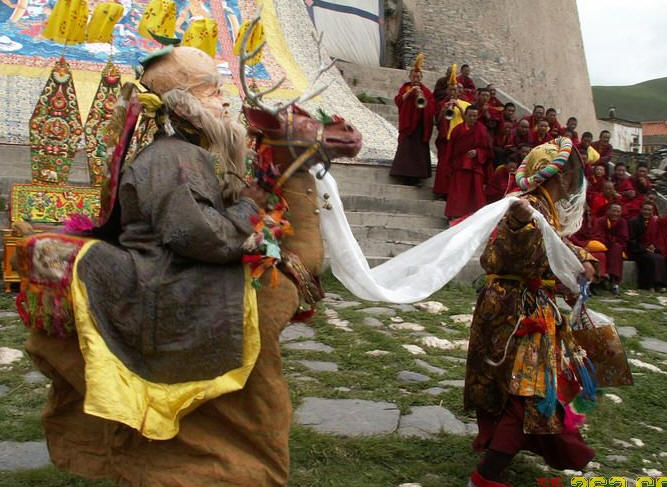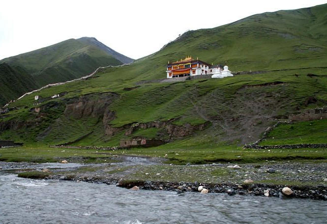 原为称多县上年措部落寺晓,通称“年措巴干寺”。位于原上年措部落西部班久扎那百长所辖地界,在今曲麻莱县巴干乡西南9公里处,属格鲁派,母寺为称多赛航寺,《玉树调查记》记:当时有寺僧50人。1958年前有寺僧400人,活佛有拉格(寺主兼管家,1922年生)、让萨(18855年生)、邦西多嘎(1922年生)、嘎秋(1941年生)、达果(1901年生)等5名;均上年措部落人。该寺于1981年8月24日批准开放,现新建小经堂5 座(共16柱),僧舍61间,有寺僧200人,由邦西多嘎活佛主持寺务