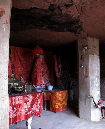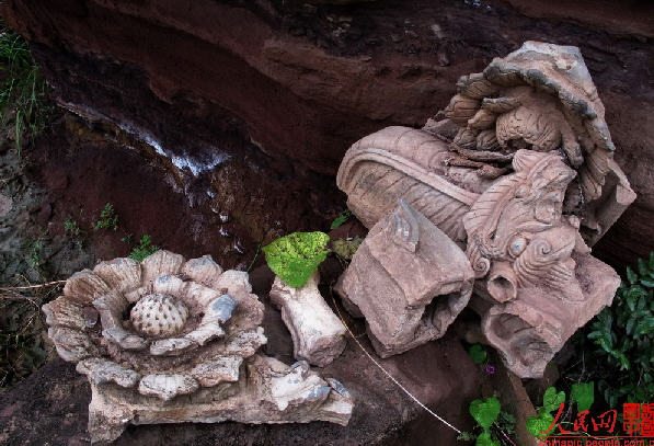 石窟位于台地上的红砂岩体上,内共有造像20尊。正中一尊,东壁九尊,西壁十尊。其中有一尊严重风化。正中主尊造像通高1.85米,像高0.75米,身宽0.53米,头饰包巾,垂于两肩,双手叠压放于胸前。坐于须弥莲花座上。东壁有深浮雕造像九尊,其中佛像五尊,罗汉像四尊。西壁有造像十尊,其中罗汉像八尊,弟子像二尊。所有造像通体泥塑后彩绘,现泥塑已脱落。造像面部大多风化。在石窟外东西两侧有大量不规则的毛石块。西侧有垛石砌成的长约24米的平台,并发现有残损的青瓦和石莲座等。庆阳市文物普查办专家初步推断,该石窟为明代晚期,具体年代有待进一步考证。