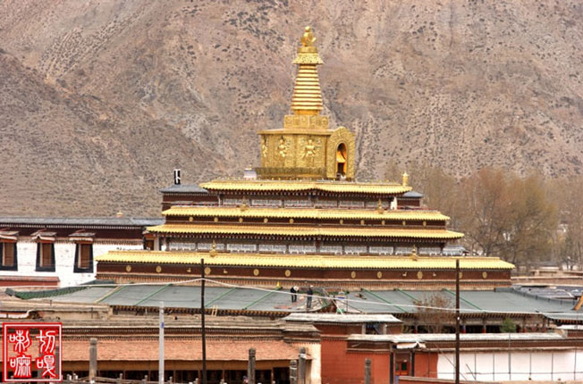 拉卜楞寺位于甘肃省甘南藏族自治州夏河县城西,座落在大夏河北岸、西北山似大象横卧,东南山似松林苍翠,大夏河自西向东北蜿蜓而流,呈右旋海螺状,是藏族人民心目中的吉祥圣地。1709的第一世嘉木样受青海蒙古和硕特部前首旗贝勒察汗丹津之请,返回故里在此风光宜人之地建寺,历经280多年的修建、扩充,发展成为一个具有六大扎仓(学院)、四十八座佛殿和囊欠(活佛住所)、五百多座僧院的庞大建筑群,在安多地区有“卫藏第二”之称。1961年,拉卜楞寺被甘肃省列省级文物保护单位之一。1982年成为全国重点文物保护单位,国这数次拨款维修。