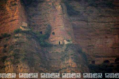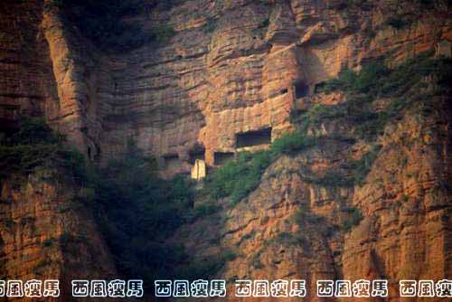 远观马务寺石窟,半壁而挂,似无路可达,然沿岩壁羊肠小路攀旋而上,其险临目,犹使人对古代工匠的胆魄油然起敬。若登临高处石窟,放眼北望,渭川景色映目爽心,盎然之兴,难以言表。山下有一明洪武年间所建的金仙寺,锺罄声声,与马务寺的奇、险、绝相映成趣,别有洞天。