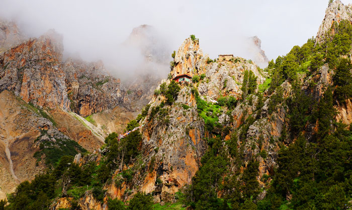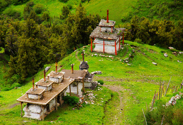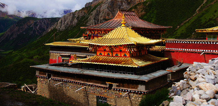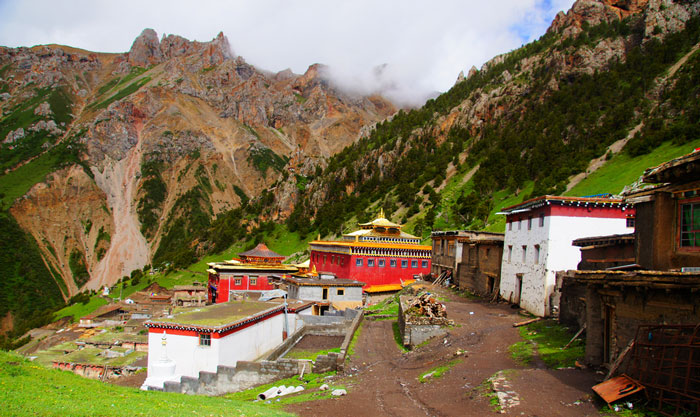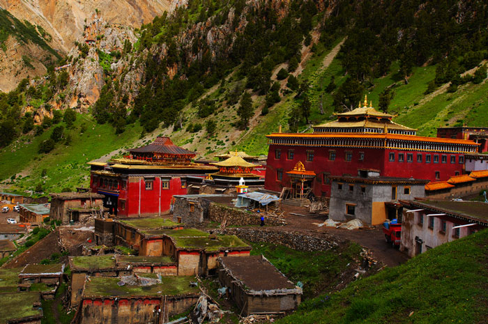青海省囊谦县境内以山峰众多出名,县之南部吉曲乡西、尕永乡东和吉尼赛乡南三乡交接处的崇山峻岭之中,有一座状似马耳的山峰,称为“达那山”,山腰间有一千年古刹,远远望去,犹如悬挂半空,令人胆战心惊,这就是因与藏族古代英雄格萨尔王英名相连而享誉康区的达那寺。