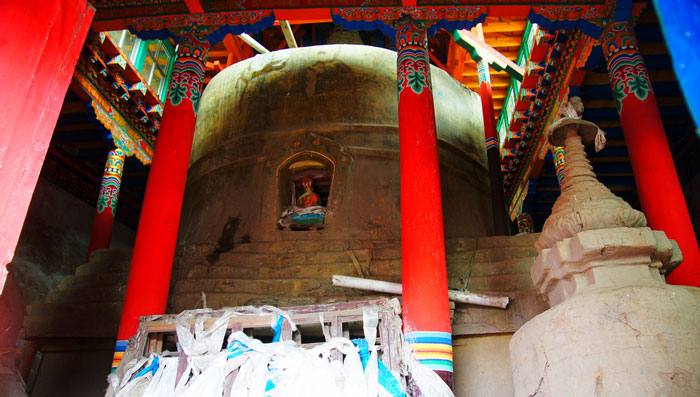 达那寺198l年批准开放,现存的主要建筑物为叶巴经堂,这座经堂呈方形,高20余米,占地44平方米,该经堂左下四分之一处有一殿堂,内塑噶丹派佛塔,高9米、殿门用紫檀木制成,取材于云南纳西族地方,殿堂形呈藏、汉、纳西三族合壁式样,传说推门而入,因人不同而发出各种声响,可卜知各人前途命运,故到那里卜吉凶者颇多。此外,还有帕摩竹巴灵塔殿1座,为二层楼厅式建筑,内供帕摩竹巴灵塔。还有叶巴殿1座,内供传为桑结叶巴·伊西则自身药泥像和该寺前身主供的本教鼻祖敦巴丰饶的镀金铜像,高约1尺。