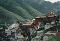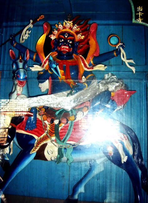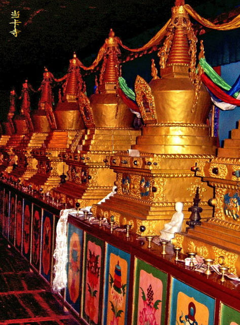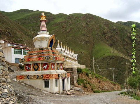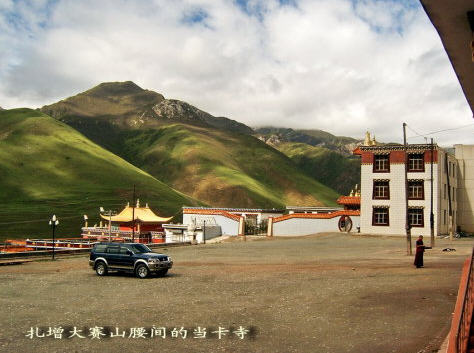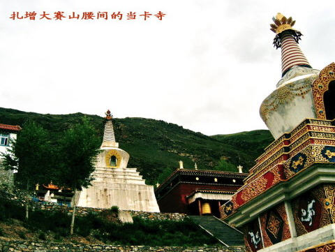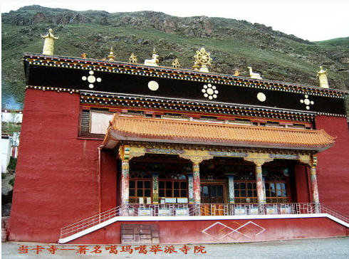 当卡寺全称为(Damkar Lhundrub Dechen Chokhor Ling),位于青海省玉树州藏族自治区首府结古境内东面约十公里处,倚山而建,势如观音静息状,下以八龙盘据之态,庄严神圣。