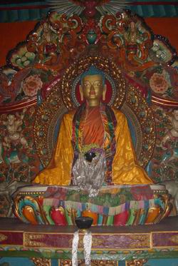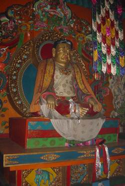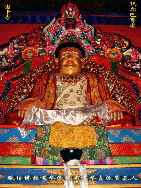 巴查道代开始建寺约在1190年左右,当时其上师杜松钦巴赠予他一白色大法螺,螺内有“阿”字(Atse)自然显现;和一尊容貌与巴查道代本人相同的佛像(注:西藏有一说,此佛像之心,如小鸟心脏般的温热,其加持力等同巴查道代本人的加持力)。上述二物(法螺与佛像)与前述非人献上之白色观音石像,是当卡寺最重要的镇寺三宝,延传至今。