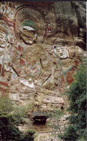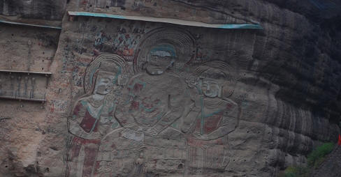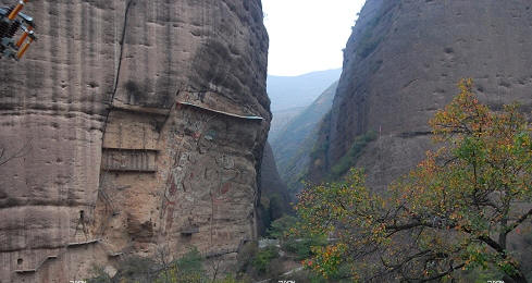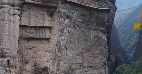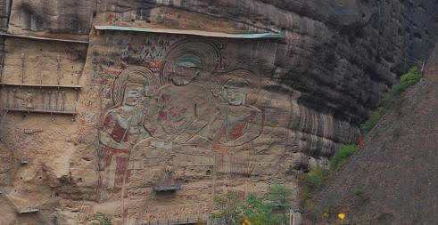 拉稍寺摩崖浮雕造像位于天水市武山县城东北约50公里处的钟楼山中