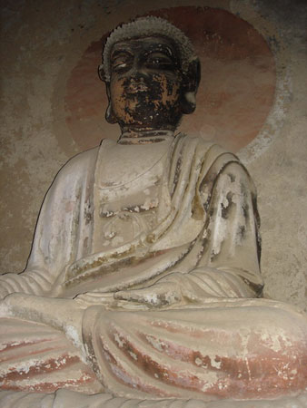 木梯寺石窟 在武山县城南35公里石渭山。山势南北走向,崛起一峰,高千米。三面悬崖绝壁,沙河绕流北去入渭水。洞窟开在距山基200米的悬崖峭壁上,横跨九梁十沟,长500米。有崖窟、摩崖龛、走廊、自然崖龛,均置木构遮檐,北侧凿山门。现沿盘山小径登山门。尚存洞窟18个、殿堂4座、塑像80余身、壁画2100平方米。始建于北魏,后经历代重修。大佛阁有唐代彩塑大佛,高14米,又名大佛寺。峰峦遍生林木野花。寺北5里屏风山有一窟,壁画具有唐代画风。