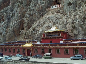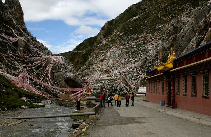文成公主庙,又称大旦如来佛堂,坐落在玉树藏族自治州州府所在地结古镇南行20公里的贝纳沟,海拔3700多米,大旦如来佛堂面积有80多平方米,高13米,依岩崖修建而成。