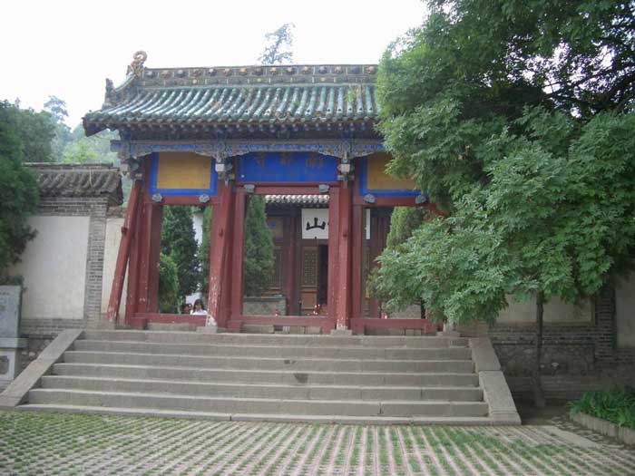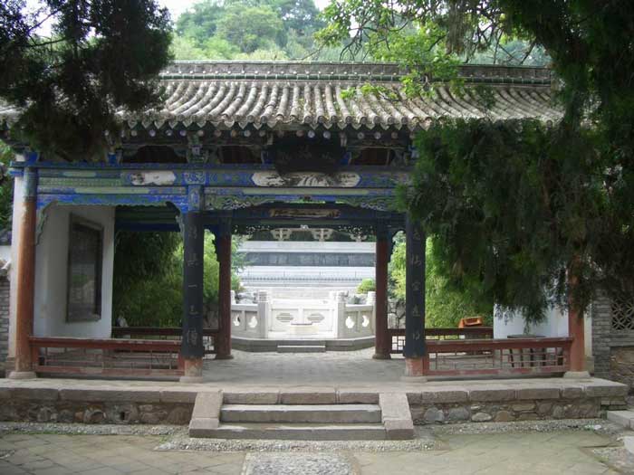 这就是杜甫笔下的"老树"。 全寺以三座山门组成东、中、西三院,构造奇特,佛像多尊,雕塑栩栩如生, 中山门内有前后院,前院东、西看楼,后为钟鼓楼,东西为禅林院。 现西仍为"禅林院",东为"杜少陵祠",祠内有杜甫及侍童塑像三尊。 后院为三间两进宽阔宏大的天王殿,原额悬摹北宋大书画家米芾书"第一山" 巨匾悬挂,气势磅礴。东山门为三间悬山顶牌坊,院内有关圣殿,东院观音殿前新修八角亭,内有北流泉,清澈见底,水味甘美,终年不竭。寺前寺后广植大片绿林,将南郭寺紧紧环抱,登山远眺,全市景观尽收眼底。