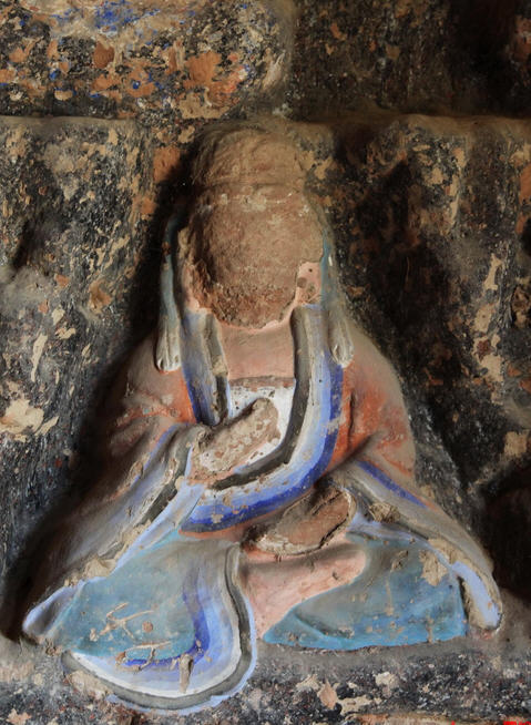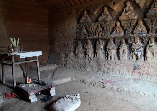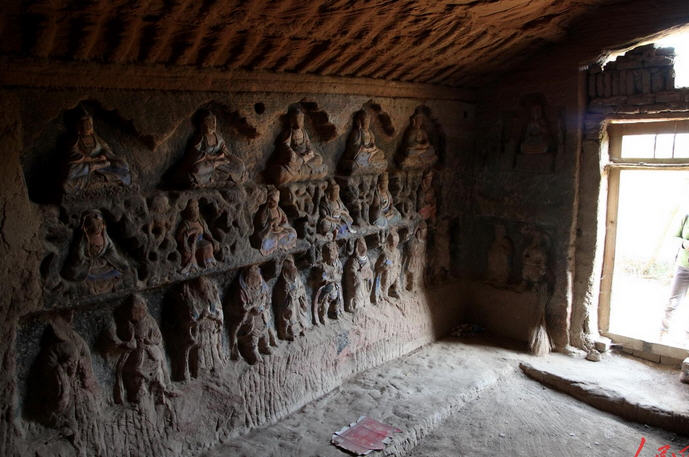 4号窟的形制、大小均与2号龛相同。窟正中已无佛。两侧各有两排长方形个小龛。每龛有菩萨5尊,其神态造型和风格大致和3号龛相同。