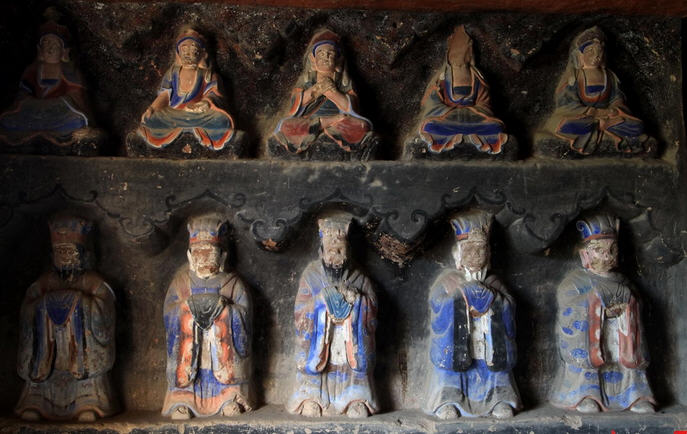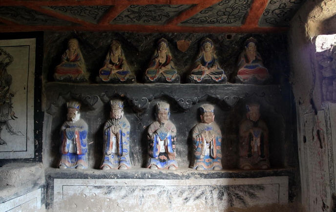 该寺原共有石窟5个,由东至西编为5号。l号窟造像已毁,5号窟因岩石塌陷,已为残窟。2号至4号窟保存较好,现共存留石雕造像82身。