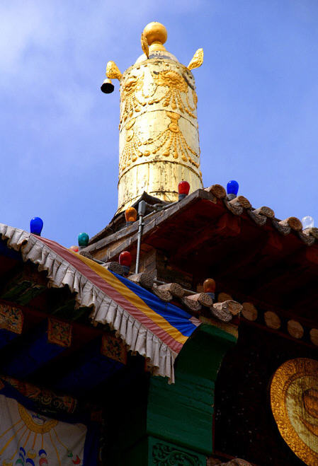 远远望去,隆务寺飞檐斗拱与堡式红墙融为一体,琉璃瓦与镀金宝瓶饰交相映辉,一片金光灿灿。这座闻名遐迩的藏传佛教寺院曾一度遭到毁坏。1980年12月,该寺作为青海省重点寺院首批开放,州县人民政府对该寺的恢复与重建工作十分重视,先后多次拨款,又得到当地群众的捐助,将该寺的天女殿、灵塔殿、观音殿、文殊殿、曲哇殿、时轮院、显宗院及密宗学院等一大批建筑物陆续修复。七世夏日仓于1979年圆寂后,为安放其灵骨,专门修建了一座新佛堂,殿内正堂供有七世夏日仓的灵骨塔,塔高10米,外包镀金铜皮,塔身镶满珍珠、宝石、玛瑙,价值连城。同时又新修僧舍66院,僧舍总数已达90院。现隆务寺已基本恢复原有规模,重现昔日风貌。