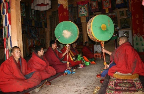 徳吉寺有大小二十多个出家喇嘛,小的十岁大的六十几岁了,由于交通不便和饮水困难条件十分艰苦,但是众师父们却十分虔诚的修行,为当地的藏民和佛教徒诵经和举行佛事活动。
