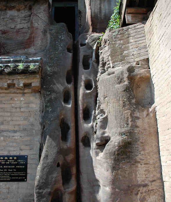 古代艺术大师,有意或无意间雕刻出的这种不同高度而给人以不同感情的视觉效果,十分奇妙地暗示了人与佛的关系原则。普通众生,如何能置身于佛上呢?这是对佛至高尊严的一种冒犯;至少是无知的不礼貌行为。也就难怪大佛呈现了那么一种眼神。和大佛同比高,似乎也不行,还是难以见到佛的笑容。只有位于大佛脚下仰视,佛才慈眉善眼,“佛”容毕露,让人充分得到祈善向善的心理满足。