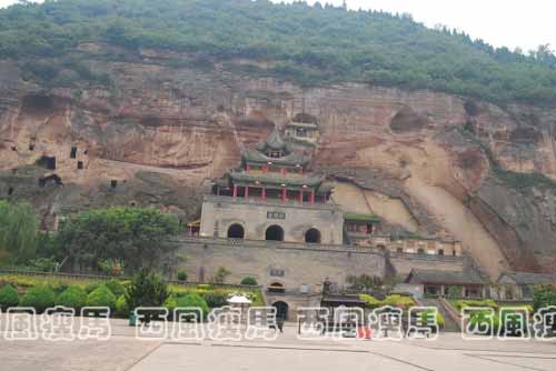 彬县大佛寺系唐太宗李世民为纪念他指挥的邠州浅水原大战和五龙坂大战中阵亡将士而建,初名应福寺,北宋仁宗为其养母刘太后庆寿时改名庆寿寺,该寺位于彬县城西10公里的清凉山下,石窟依山雕凿,就在理像,围绕窟内开龛70处,造像740多尊。窟平面呈平圆形,南北13米,东西28米,窟底周长74米,顶高25米。窟内主像为一佛二菩萨。大佛居中结跏跌坐,肩宽体厚,高约20米。上体穿窟室中心而上,佛两旁菩萨头戴宝冠,衣着华丽,身高均达15米许,故俗称“丈八佛”。窟壁为佛龛,均雕刻大小佛及菩萨等造像。窟前有护楼三层,可以登临眺望。此窟规模宏大,造像宏伟,雕饰富丽,技巧精湛,令人叹为观止。