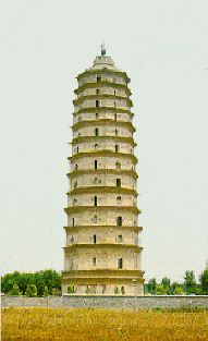 又称铁佛寺塔。位于陕西省泾阳县崇文乡东太平村。据塔下碑石记载,明万历十九年(A.D.1591)李世达主持修建,每年修一层,每层刻有捐资者姓氏。修至第九层时,李世达亡故。其女继承父志,续修至十三层,于明万历三十三年(A.D.1065)竣工。寺院被焚于清同治元年(A.D.1862),现仅存山门和宝塔。