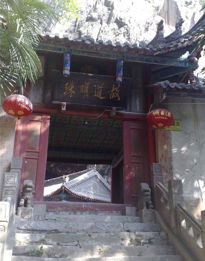 灵岩寺又名药水岩。位于城南3.5公里处嘉陵江东岸的山岩上,依山临江,座东向西。始建于唐开元年间(713— 741)。该寺由两个天然洞穴组成,分山门、前洞、后洞。前洞景阔,洞口高约25米,宽约50米,深60余米,呈虎口型。洞内卧一石龟,洞中大雄宝殿下端 坐毗庐大佛像(始塑于明正德六年),伴以菩萨、接引二佛。宝殿前有三株高约20米的棕树,人称“唐棕”,恰似“佛前三柱香”,1962年风折一株。“唐 棕”前有鱼池,水自洞内引入,清澈见底。左右各有厦房三间。最前的望江楼栖崖面江而立,高三层,气势宏伟。由前洞向南,崖上清泉汩汩,传“能疗百疾”,故 名“药水洞”。傍崖前行数十米,过“奈何桥”,即是后洞,名罗汉洞,又称白鹿洞,不及前洞宽大,中间有一钟乳石柱,柱后石龛侧卧一巨大睡佛,周围群佛伴 立。洞口原有十八罗汉,各具形态。1966年“文革”中被毁。后经人民政府数次拨款修葺,使灵岩寺逐渐恢复了原貌,并增添了部分建筑。现内藏历代碑碣刻石 110余块,有“小碑林”之称,成为本县一处游览胜地。