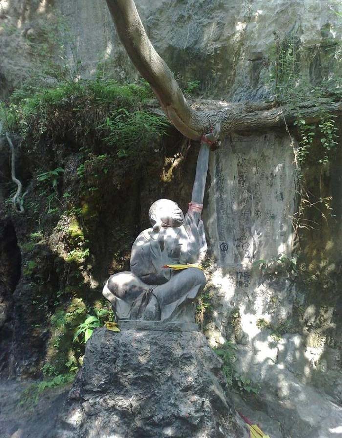 由前向左,经“奈何桥”,傍崖而行至后洞,又名“罗汉洞”。“玉柱”、睡佛,依次而列,别有情趣,更加神秘莫测。两洞之间有一泉,西流而入嘉陵 江,据说饮此泉水,上清头目,中顺肠胃,具有清心明目之功,解热除烦之能,因此而叫“药水”,后此洞之右即“药水洞”,每逢春夏鸟语花香,林荫气爽,游人 流连。