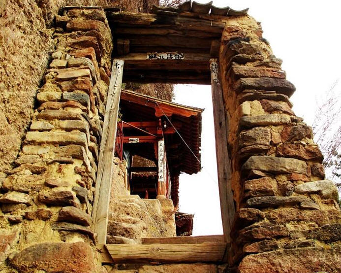 从山门跨进寺院一看,正对山门的是云崖寺正殿大雄宝殿,两侧为两层楼的厢房,一楼的客房、五观堂作接待、储藏、吃斋之用,二楼为住宿之所。正殿背后是厨房,墙上还有几幅完整的壁画,花纹精美,笔法纯熟。整个寺院占地仅200多平方米。在我们所见过的庙宇中,云崖寺实在是太袖珍了。