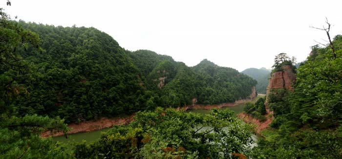 各有洞天,其中北台由笔架山、棋盘峰、神仙桌等五峰汇集而成,与云崖主峰合成一幅“五老观太极”的图画,意趣盎然。西峙罗汉崖,起伏多变,垒垒怪石似罗汉排坐。极目四望,被翠色掩映的奇峰秀岭如狮,如虎,如游龙,如鹤立,如兵士列阵,如高士对弈,维妙维肖,历代游人形象地称为狮子岭、金驼峰、屡牛望月、金龟饮水、行军峰、棋盘峰等。曾有一外国专家在游览了云崖寺后评价:这是中国自然胜景中保护最完好的,是一块瑰宝。1993年10月,国家林业部公布云崖寺景区为国家级森林公园。